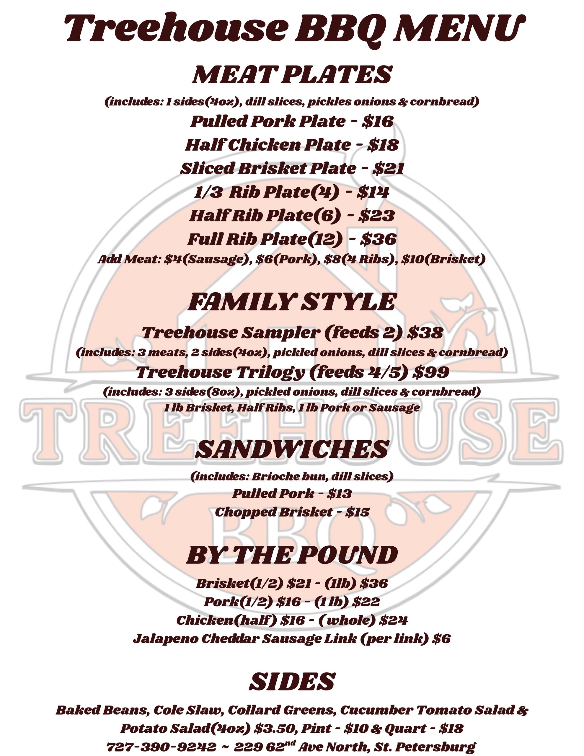 At Treehouse BBQ, eating good food is a way of life. So the next time you find yourself craving something absolutely delicious...please allow us to offer you our services!
